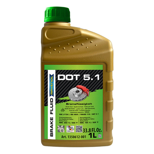 Специальная формула RAVENOL DOT 5.1 соответствует международным спецификациям DOT 5.1 SAE J 1704, ISO 4925 и отвечает требованиям FMVSS 116 DOT 5.1.