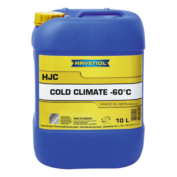 RAVENOL HJC COLD CLIMATE -60°C - готовая к применению охлаждающая жидкость, предварительно смешанная с водой, внесезонного применения, разработанная на основе моноэтиленгликоля для систем охлаждения двигателей, гарантирующая защиту от коррозии и замерзания при применении в климатических зонах с пониженными температурами, без содержания аминов и фосфатов.