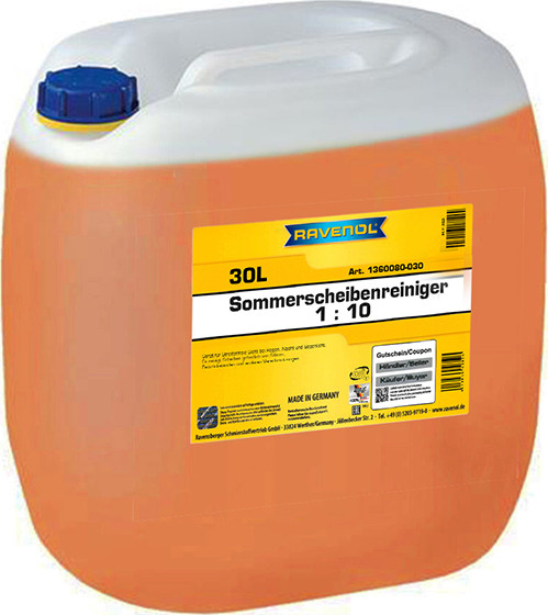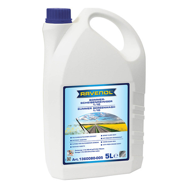 RAVENOL Sommer-Scheibenreiniger 1: 10 концентрат летней стеклоомывающей жидкости для бачка стеклоомывателя автомобиля с запахом апельсина. Разработана для стеклоомывателей современных автомобилей всех марок.